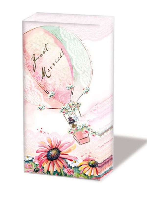 Feiern Sie die Liebe stilvoll mit unseren 10 Taschentüchern „Hochzeit – Brautpaar im Ballon mit bunten Blumen“. Das liebevoll gestaltete Motiv zeigt ein glückliches Brautpaar, das in einem romantischen Ballon über farbenfrohe Blumen schwebt – perfekt für emotionale Momente während der Hochzeitsfeier.